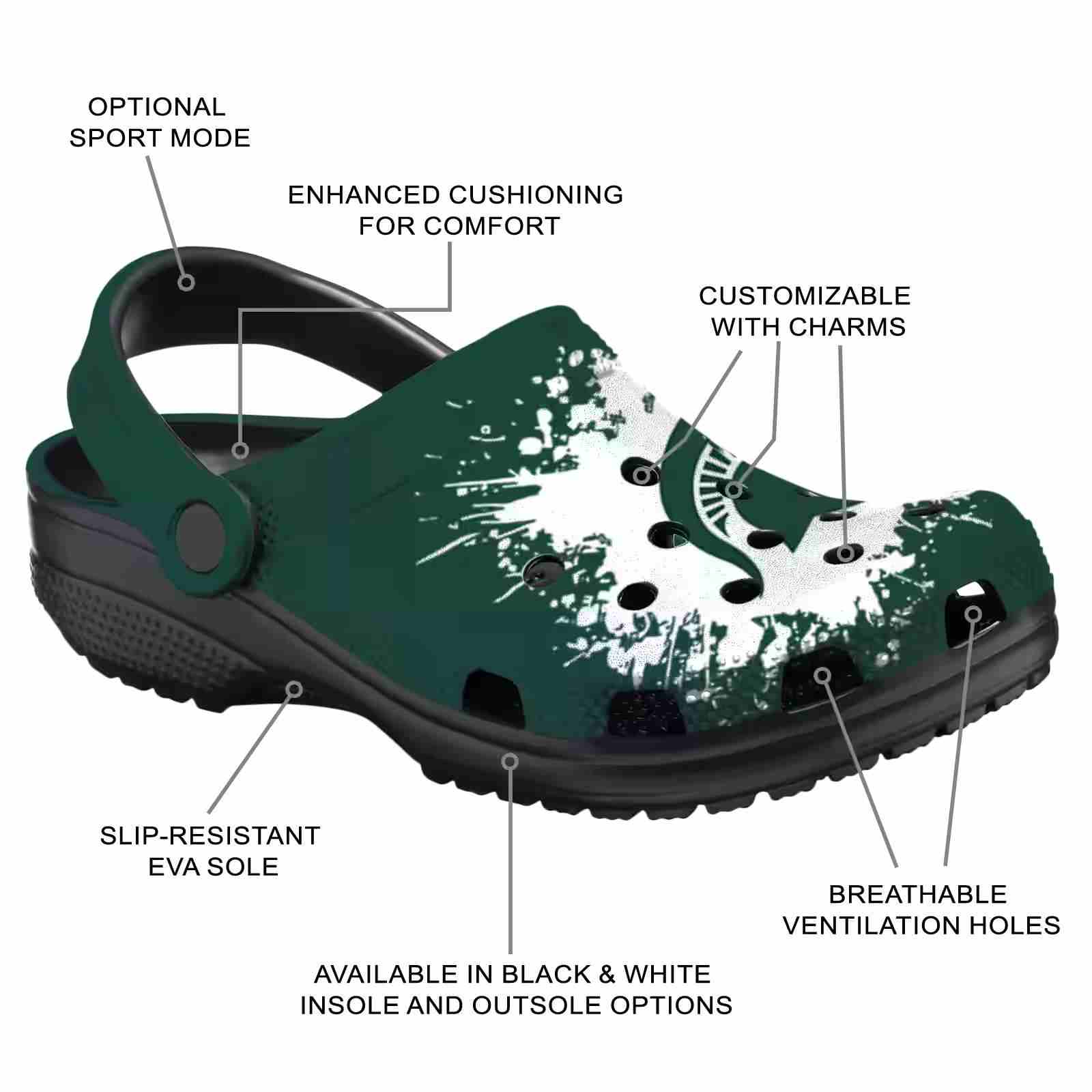 As part of our Michigan State Spartans Crocs and NCAA Crocs collections, these unique Clog are designed to let your love for your favorite shine bright.