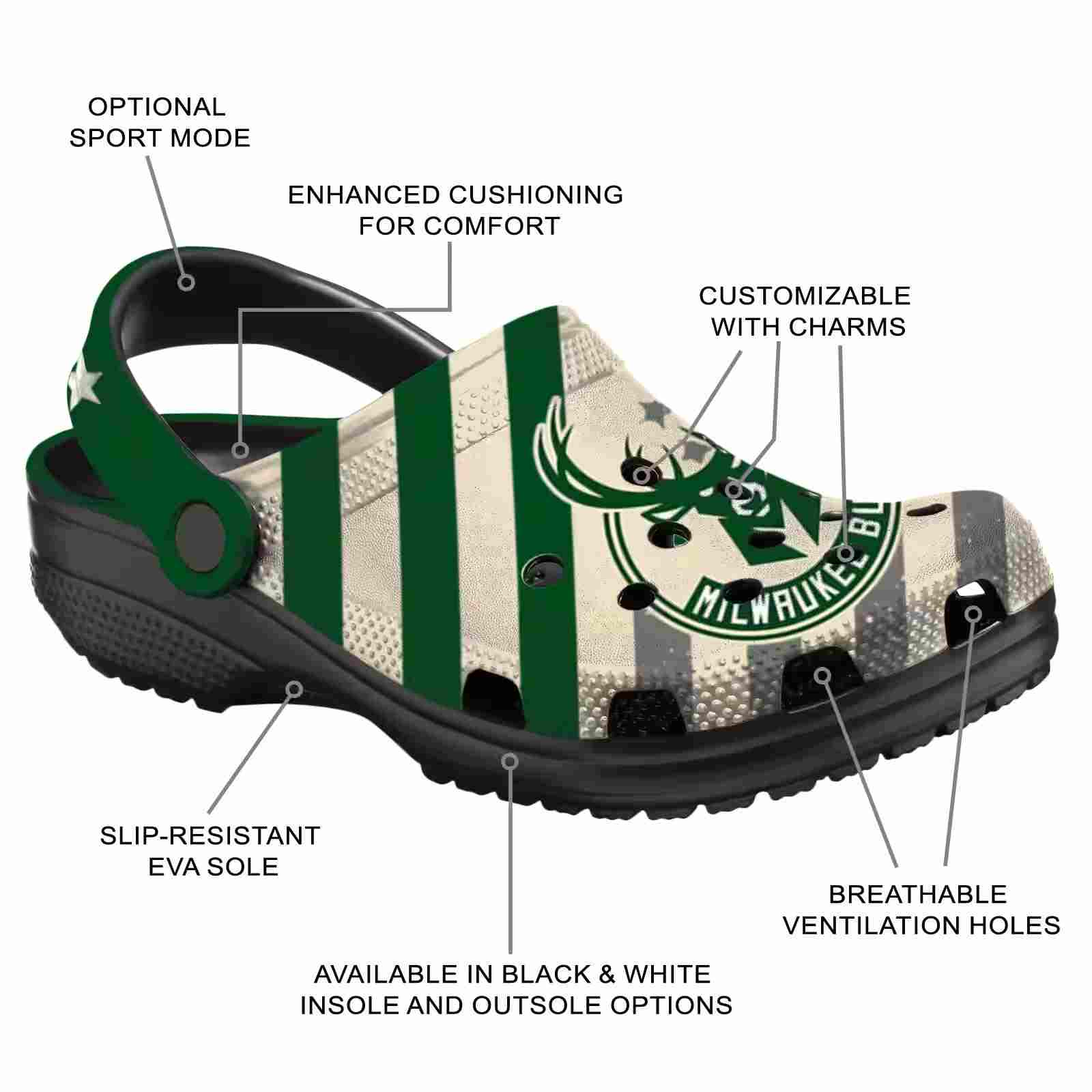 As part of our Milwaukee Bucks Crocs and NBA Crocs collections, these unique Clog are designed to let your love for your favorite shine bright.