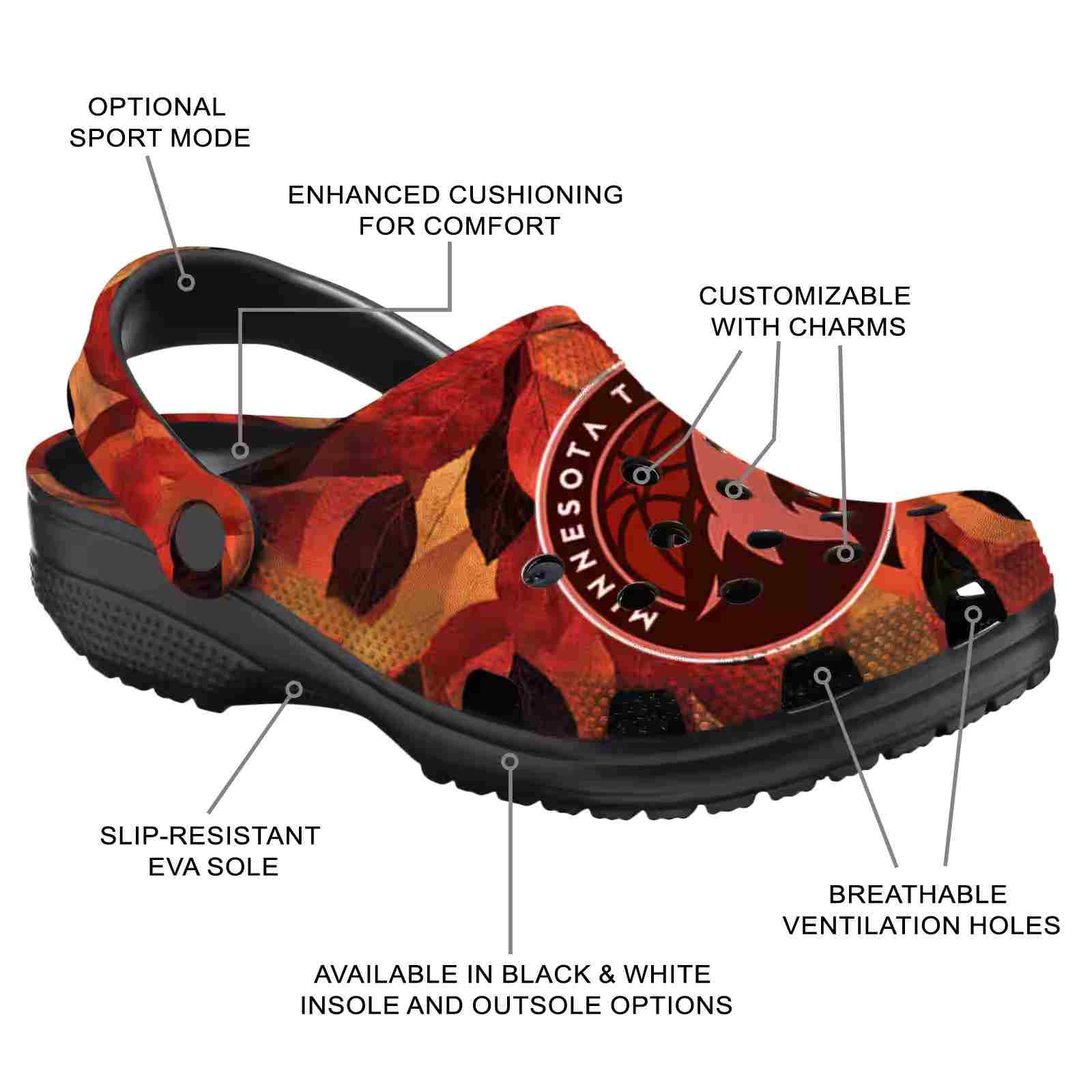 As part of our Minnesota Timberwolves Crocs and NBA Crocs collections, these unique Clog are designed to let your love for your favorite shine bright.