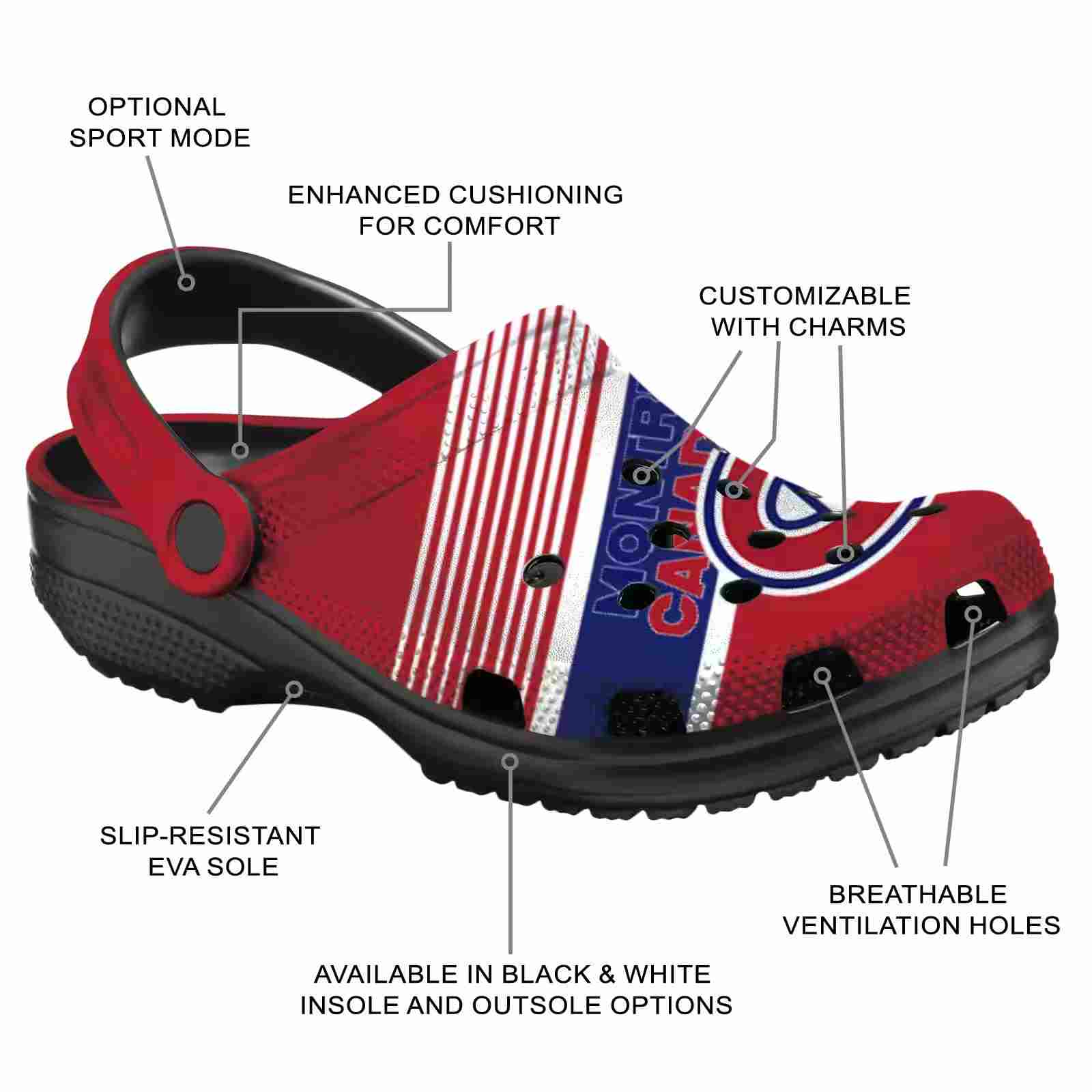 As part of our Montreal Canadiens Crocs and NHL Crocs collections, these unique Clog are designed to let your love for your favorite shine bright.