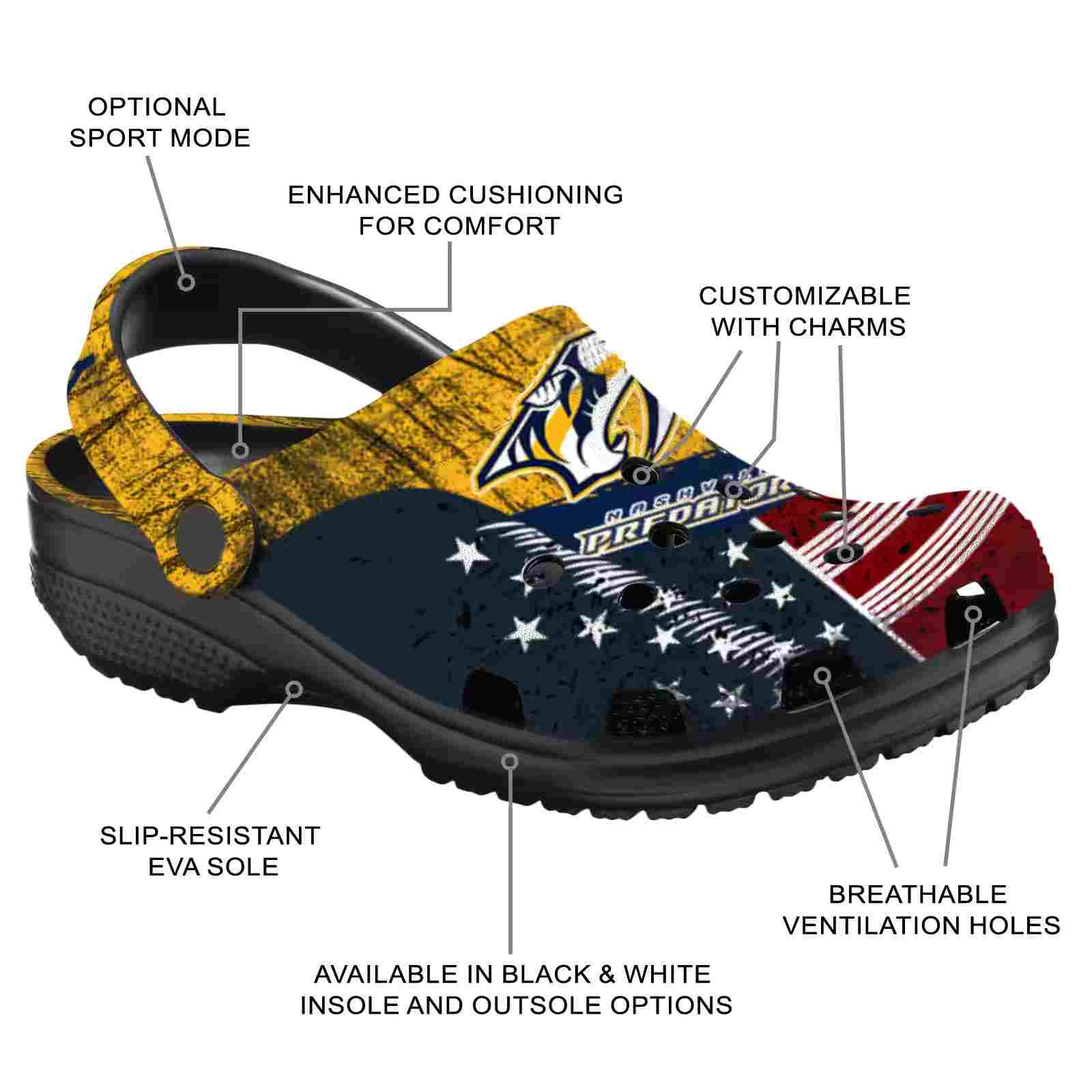 Personalized Nashville Predators Star-Spangled Side Pattern ClogTVC1801853