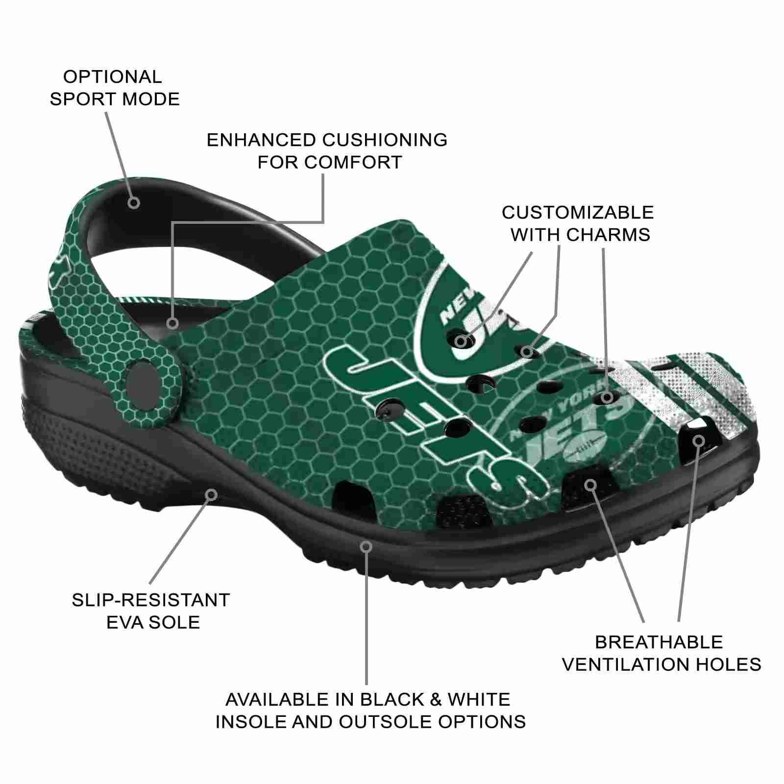 As part of our New York Jets Crocs and NFL Crocs collections, these unique Clog are designed to let your love for your favorite shine bright.