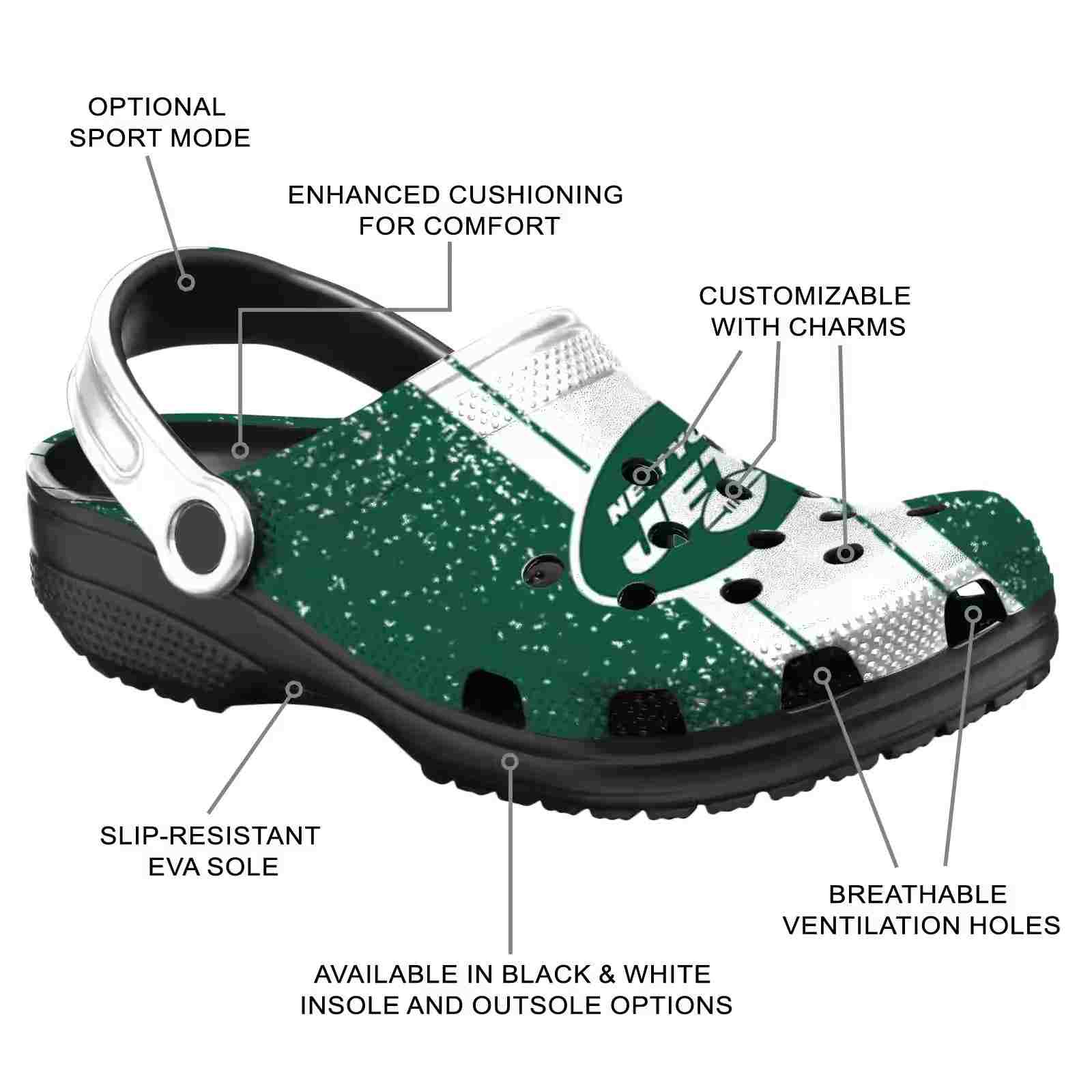 As part of our New York Jets Crocs and NFL Crocs collections, these unique Clog are designed to let your love for your favorite shine bright.