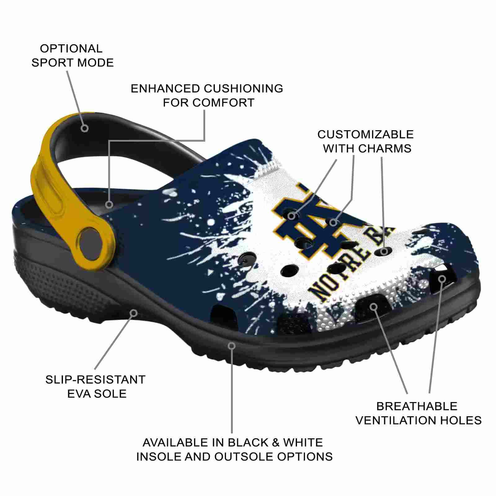 As part of our Notre Dame Fighting Irish Crocs and NCAA Crocs collections, these unique Clog are designed to let your love for your favorite shine bright.