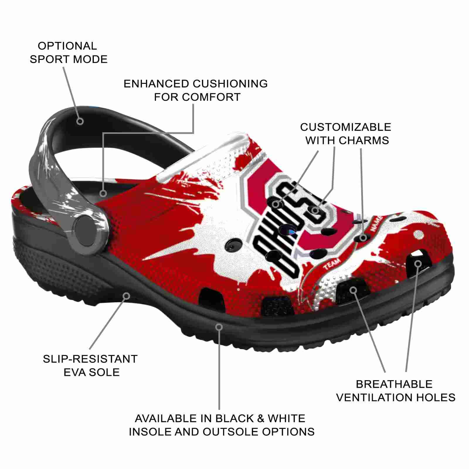 As part of our Ohio State Buckeyes Crocs and NCAA Crocs collections, these unique Clog are designed to let your love for your favorite shine bright.