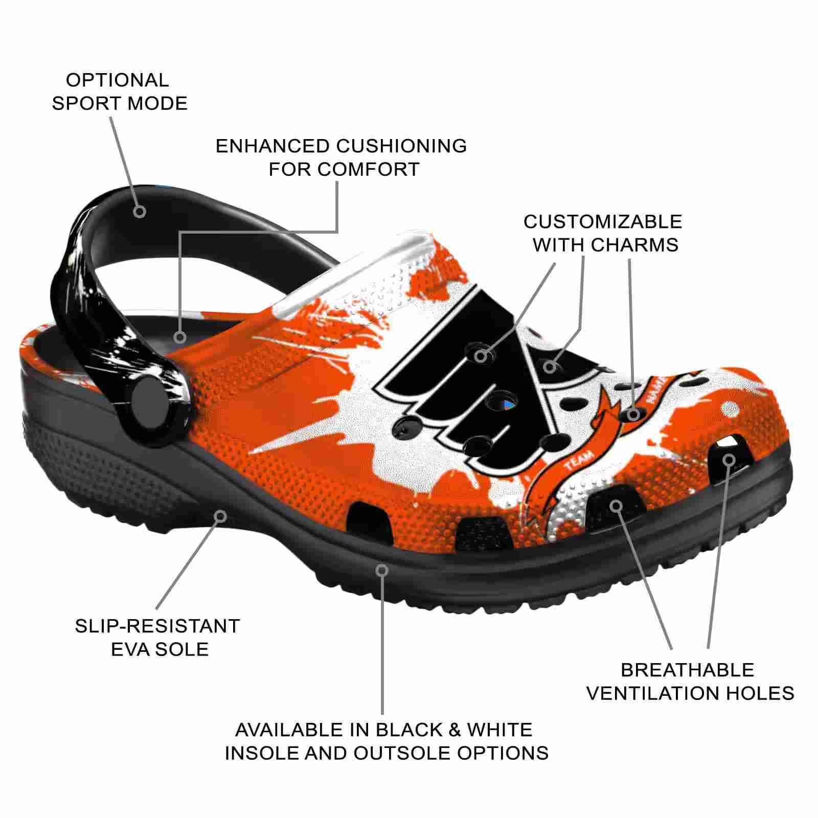 As part of our Philadelphia Flyers Crocs and NHL Crocs collections, these unique Clog are designed to let your love for your favorite shine bright.