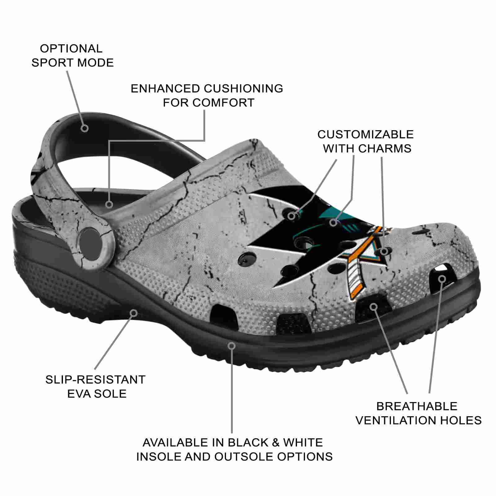 As part of our San Jose Sharks Crocs and NHL Crocs collections, these unique Clog are designed to let your love for your favorite shine bright.