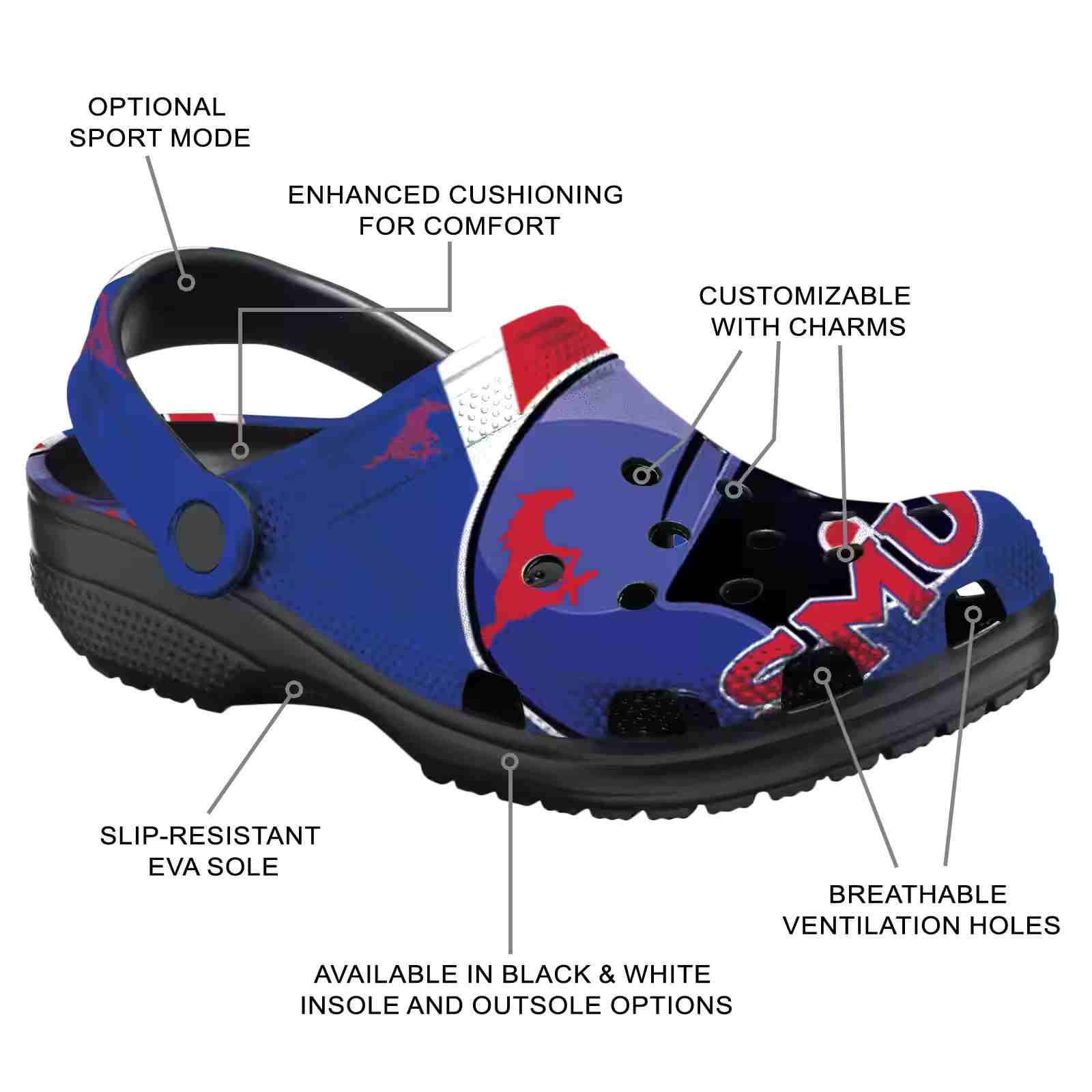 As part of our SMU Mustangs Crocs and NCAA Crocs collections, these unique Clog are designed to let your love for your favorite shine bright.