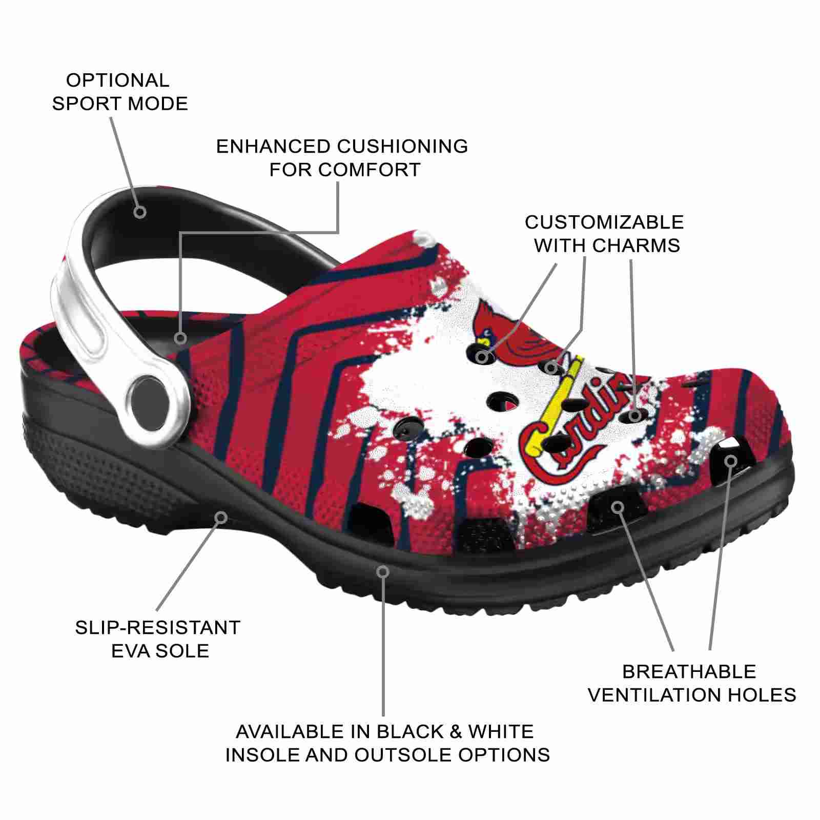 As part of our St. Louis Cardinals Crocs and MLB Crocs collections, these unique Clog are designed to let your love for your favorite shine bright.