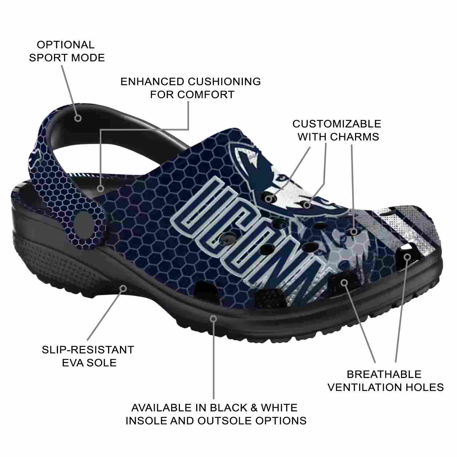 As part of our UConn Huskies Crocs and NCAA Crocs collections, these unique Clog are designed to let your love for your favorite shine bright.