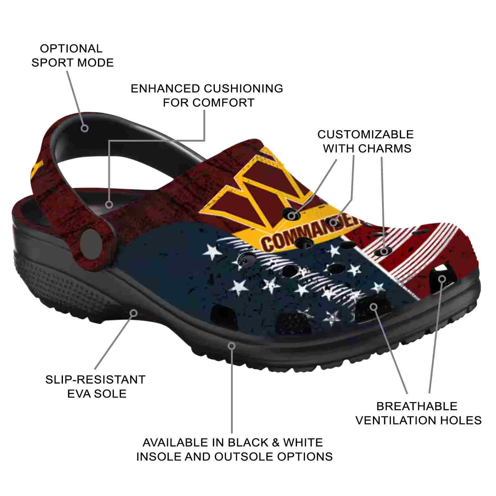 As part of our Washington Commanders Crocs and NFL Crocs collections, these unique Clog are designed to let your love for your favorite shine bright.