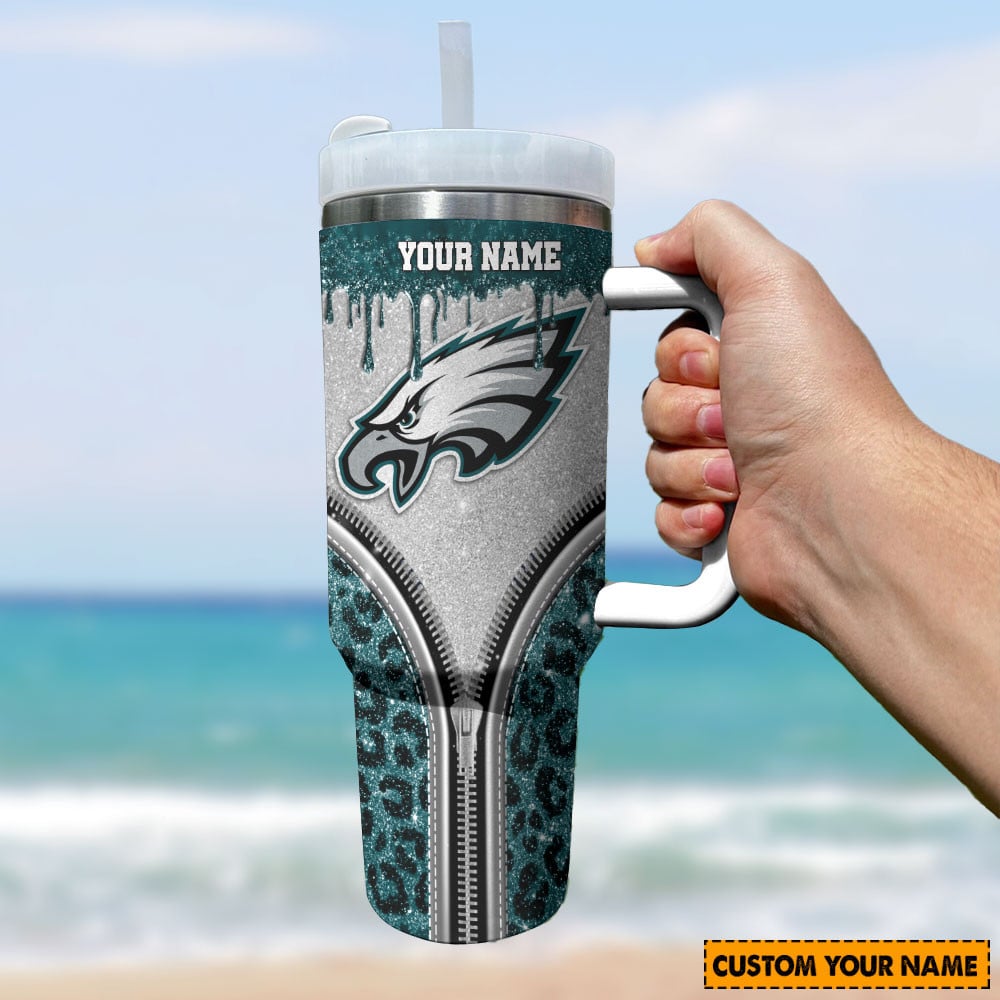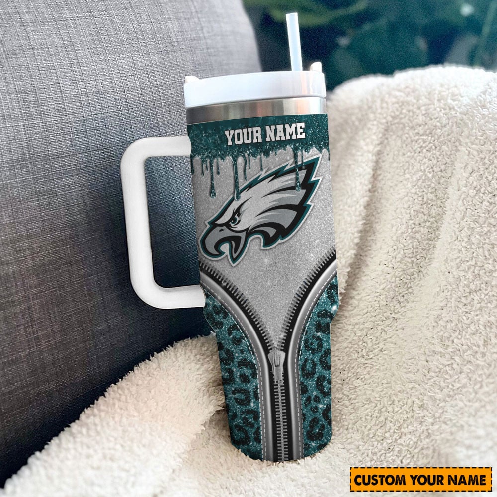 Philadelphia Eagles NFL Glitter Leopard Print Custom Stanley Cup 40 oz 30 oz Tumbler With HandleTVC230144