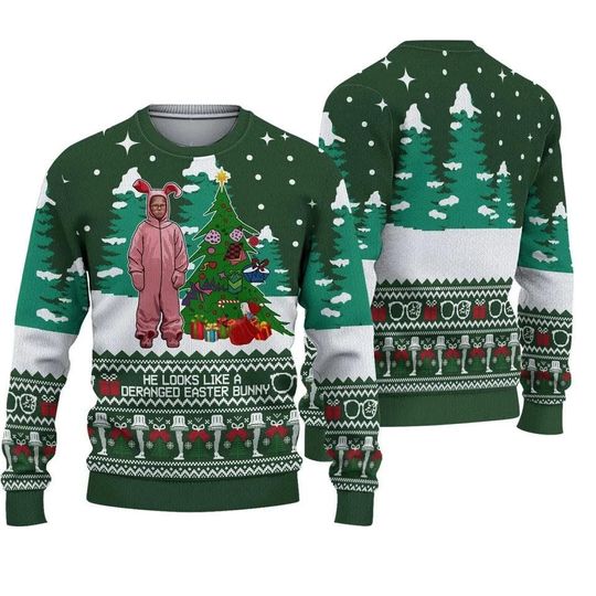 Be the first to review “Pink Bunny Ralphie Ugly Christmas Sweater, Christmas Story Movie Leg Lamp” Cancel reply