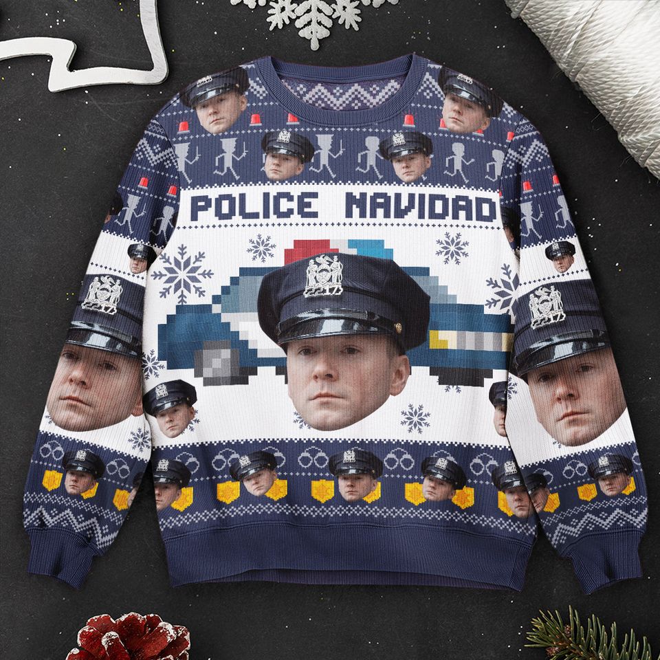 Police Navidad – Personalized Photo Ugly Sweater – Police Officer Gifts for Men