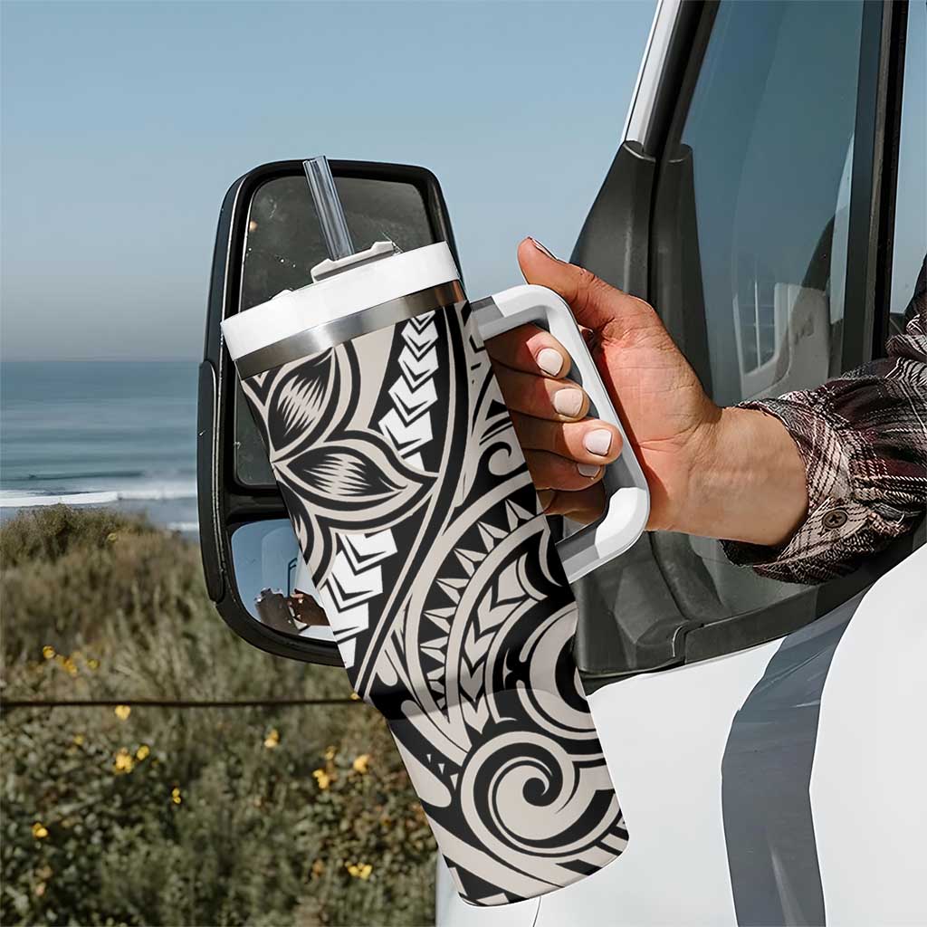 Polynesian Plumeria Floral Tattoo Beige Custom Stanley Cup 40 oz 30 oz Tumbler With HandleTVC2301375