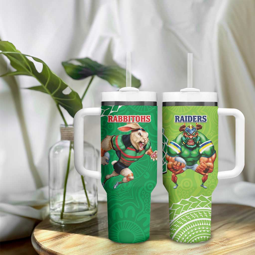 Rabbitohs And Raiders Rugby Aboriginal Mix Polynesian Pattern Custom Stanley Cup 40 oz 30 oz Tumbler With HandleTVC2301331