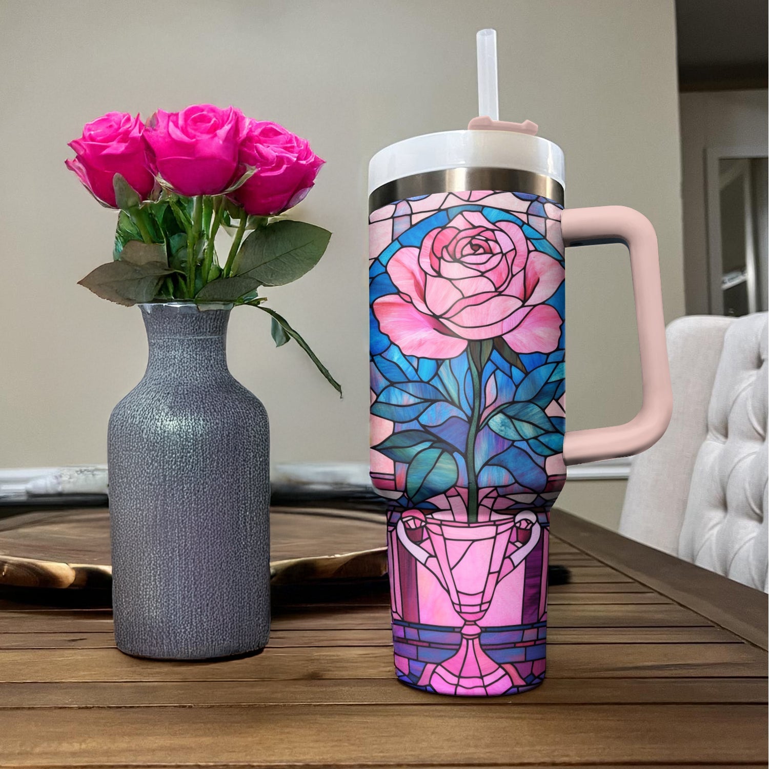 Rose Flower Custom Stanley Cup 40 oz 30 oz Tumbler With HandleTVC2301293