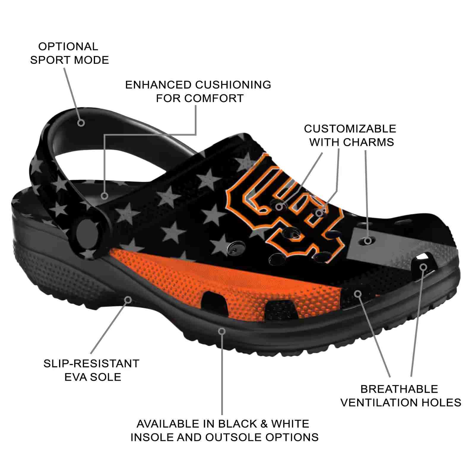 As part of our San Francisco Giants Crocs and MLB Crocs collections, these unique Clog are designed to let your love for your favorite shine bright.