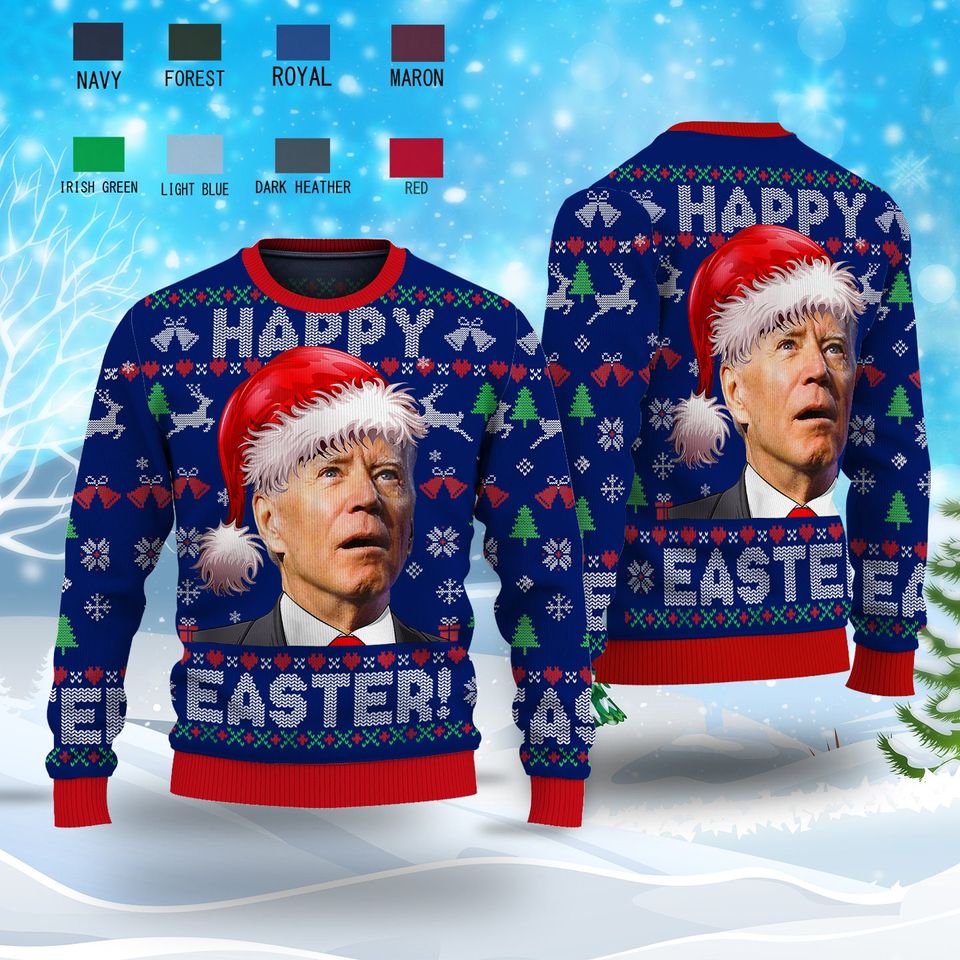 Santa Joe Biden Merry Easter Ugly Christmas Shirt, Funny Joe Biden Ugly Christmas Sweater