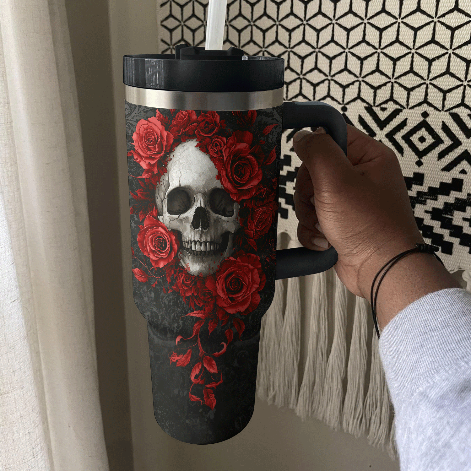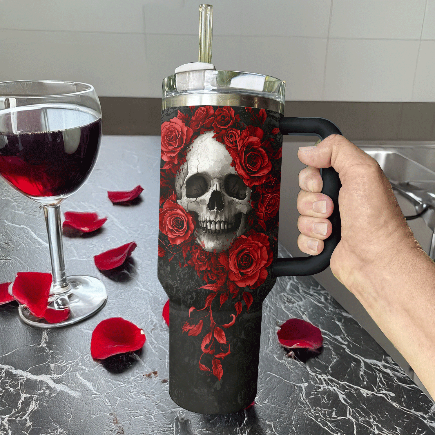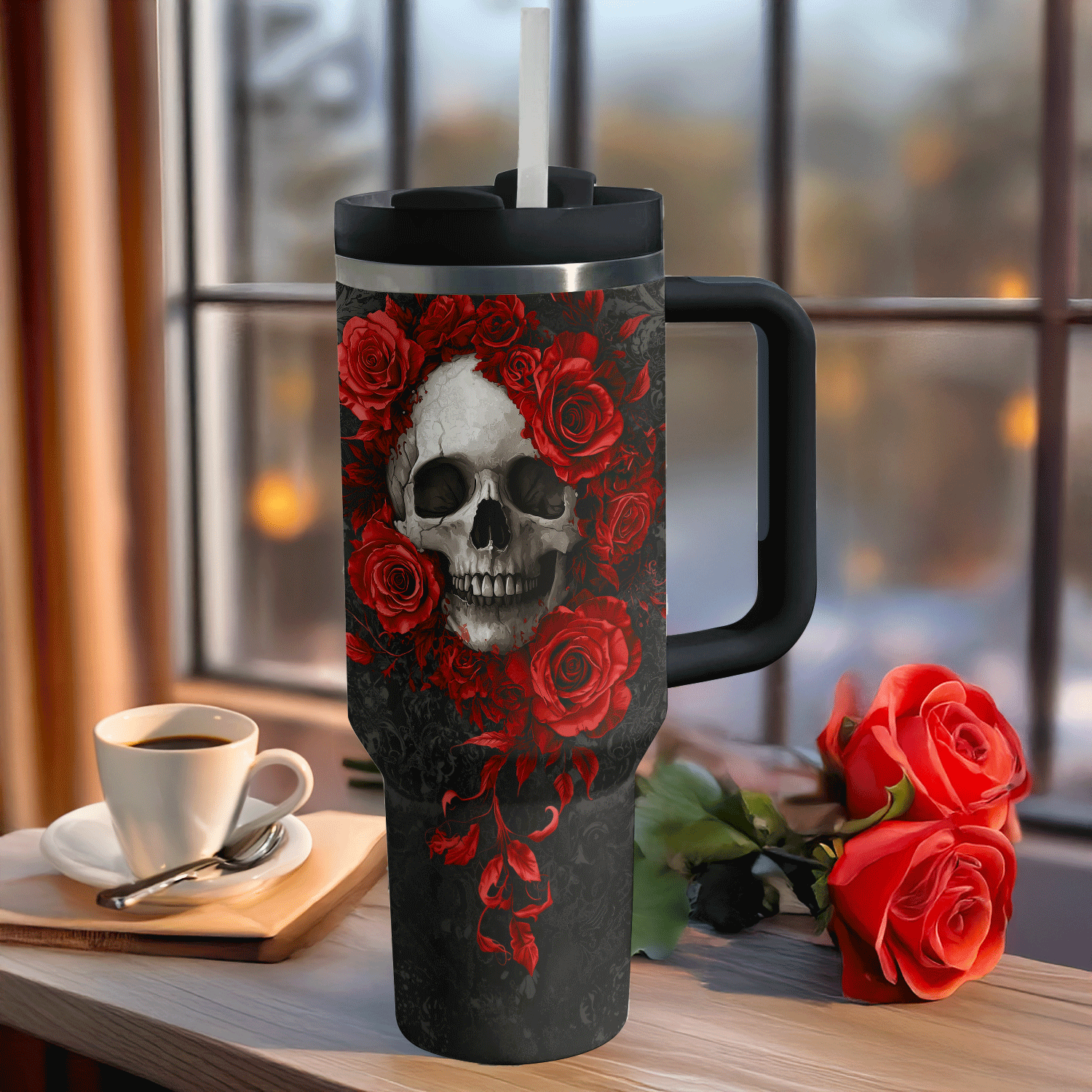 Skull Crimson Bloom Custom Stanley Cup 40 oz 30 oz Tumbler With HandleTVC2301308