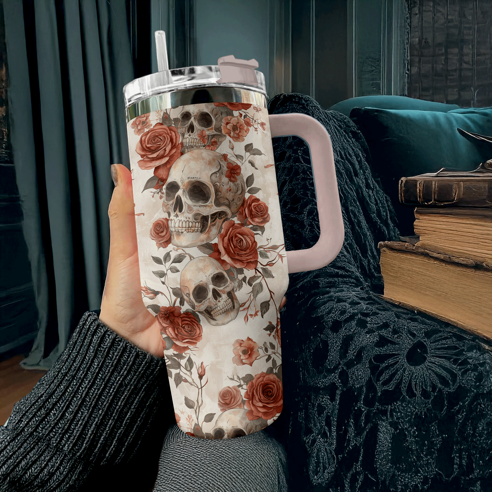 Skull With Flower Custom Stanley Cup 40 oz 30 oz Tumbler With HandleTVC2301307