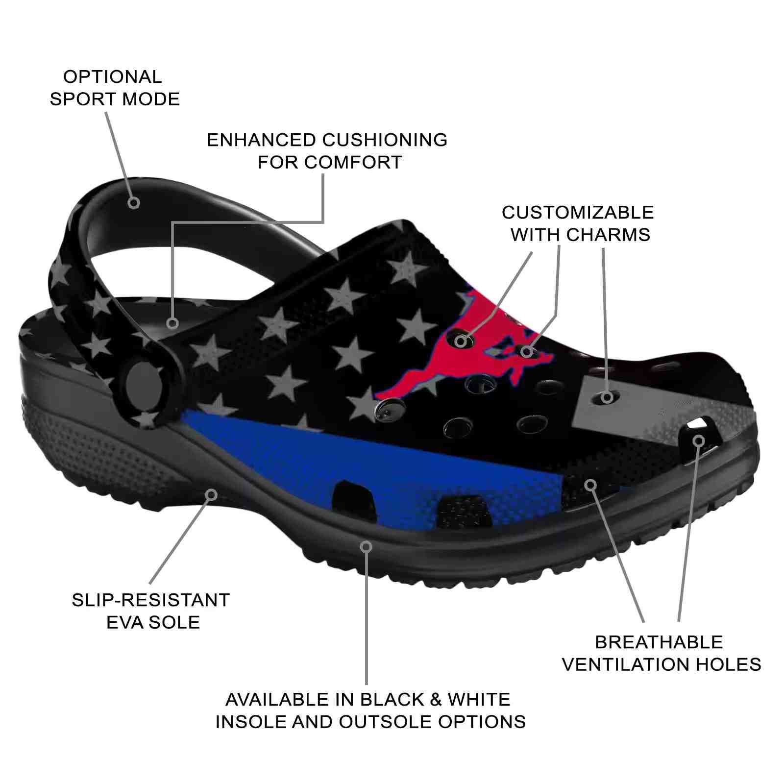 Be the first to review “SMU Mustangs Stellar Stripes Theme ClogTVC1801794”