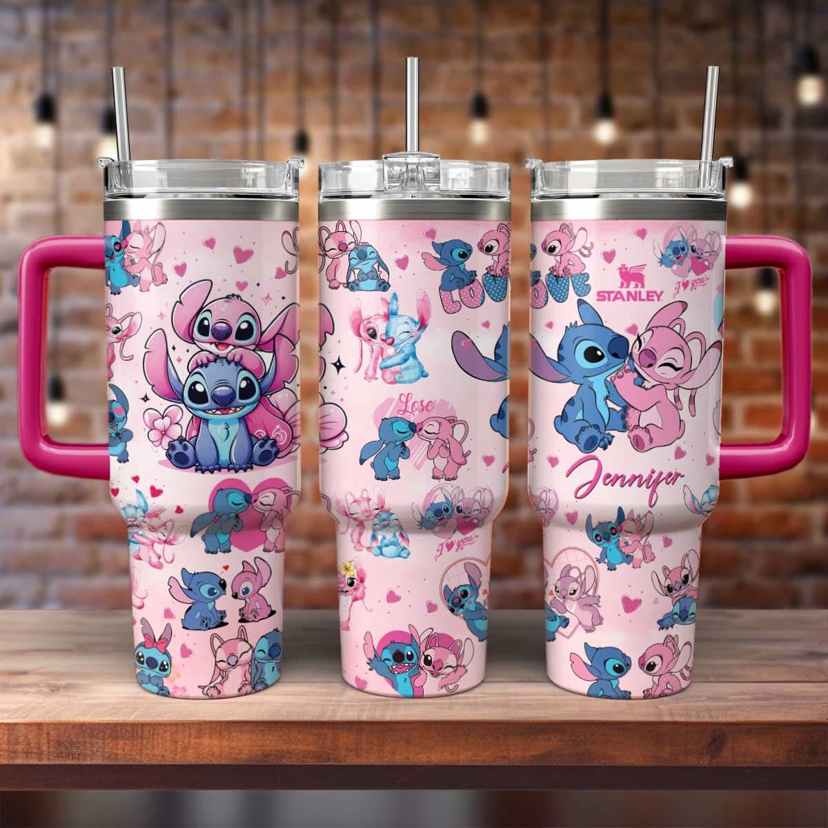Stitch And Angel Cartoon Custom Stanley Cup 40 oz 30 oz Tumbler With HandleTVC2301483