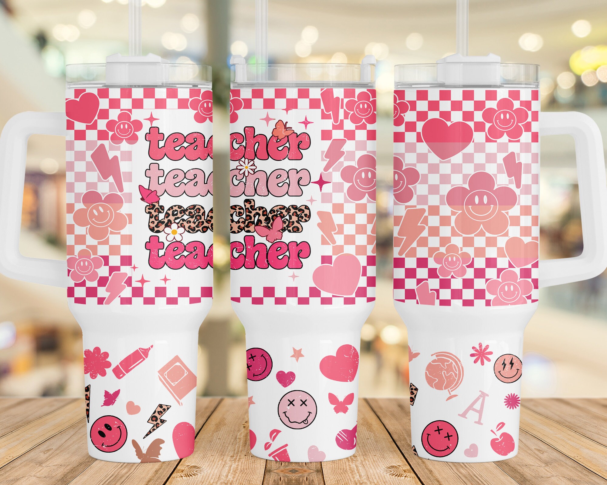Teacher Retro Checkered Smiley Face Custom Stanley Cup 40 oz 30 oz Tumbler With HandleTVC2301959