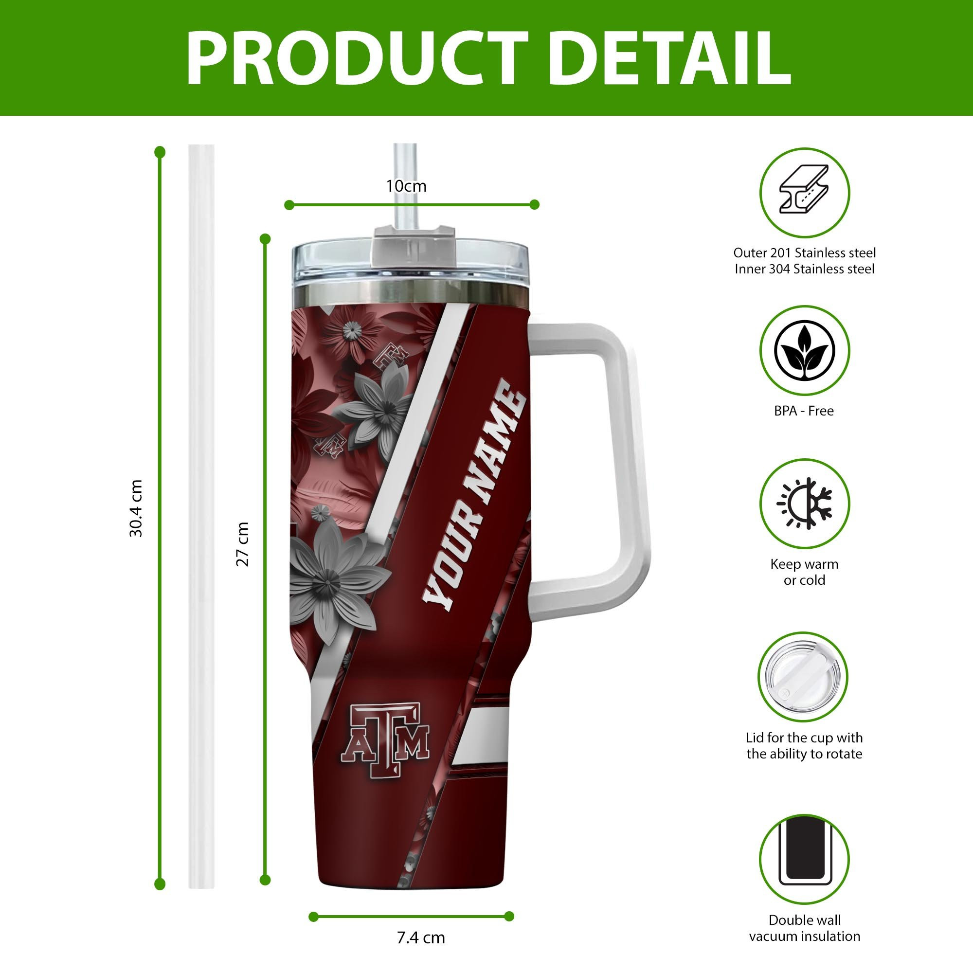 Texas A&M Aggies NCAA Custom Stanley Cup 40 oz 30 oz Tumbler With HandleTVC230102