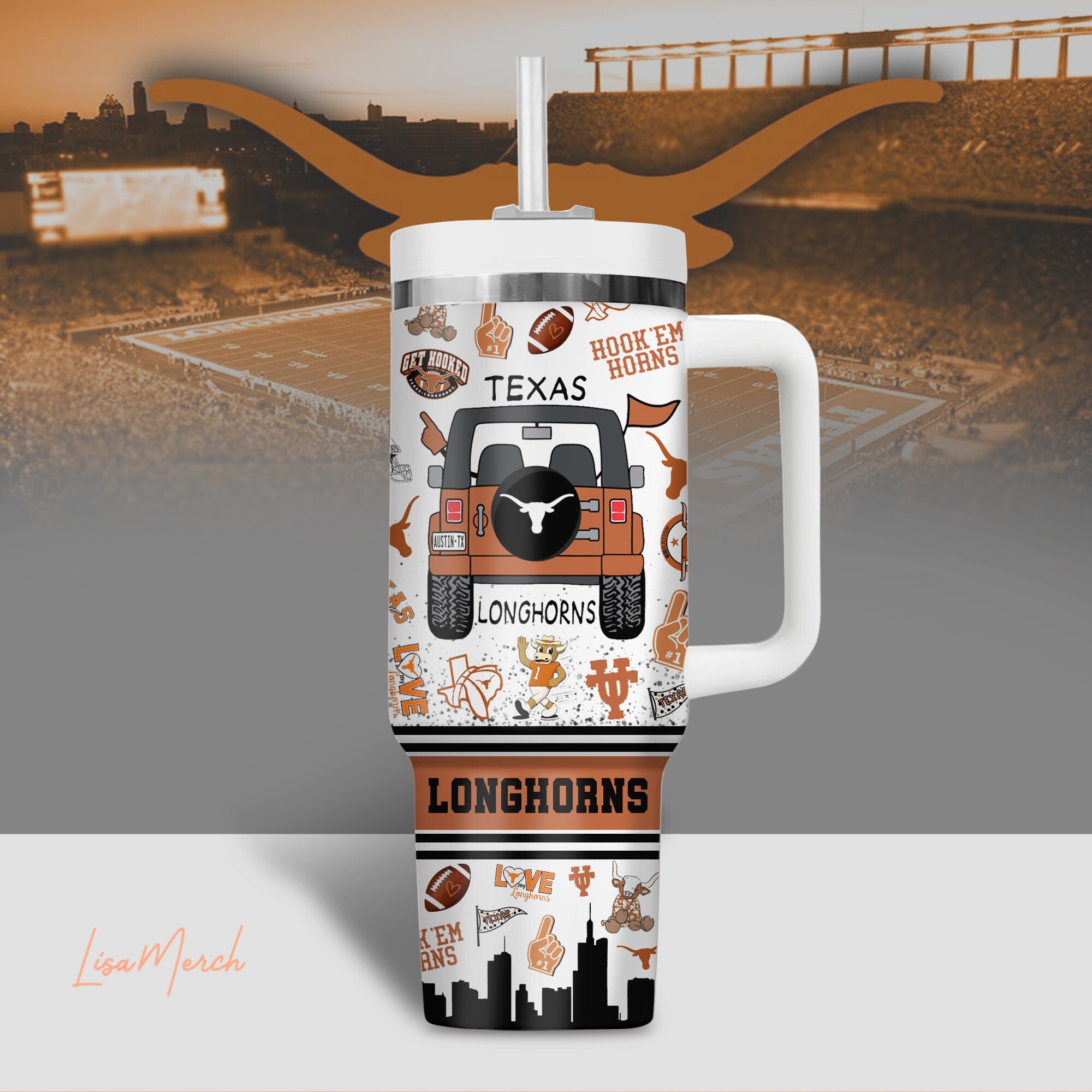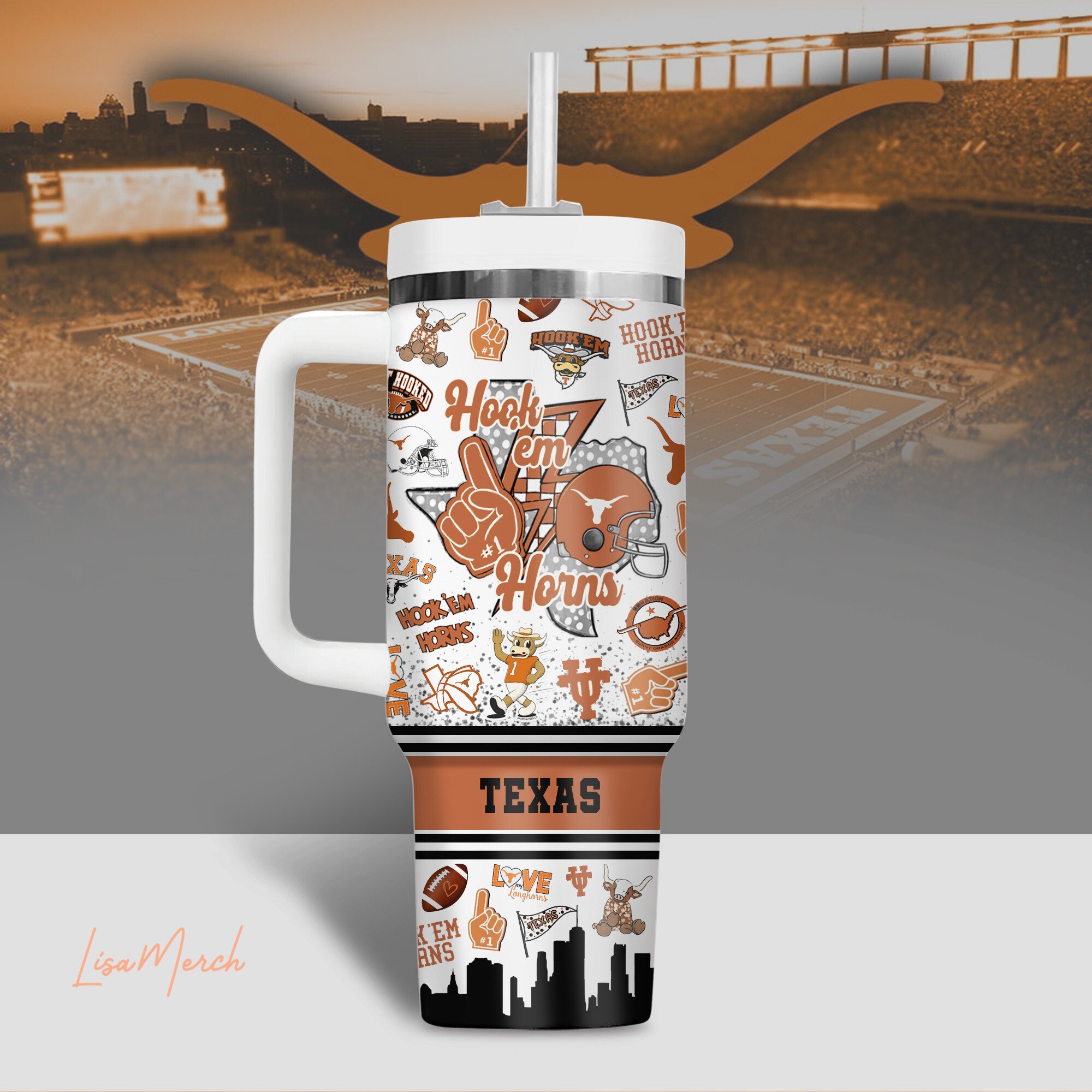 Texas Longhorns NCAA Custom Stanley Cup 40 oz 30 oz Tumbler With HandleTVC2301509