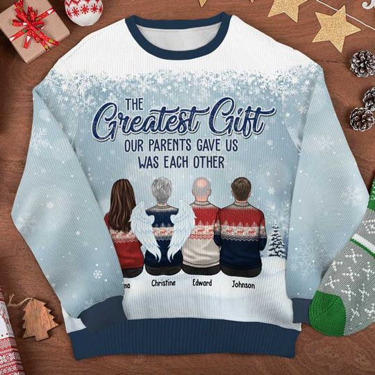 The Greatest Gift Our Parents Gave Us Was Each Other – Family Personalized Custom Ugly Sweatshirt – Unisex Wool Jumper – Christmas Gift For Siblings, Brothers, Sisters
