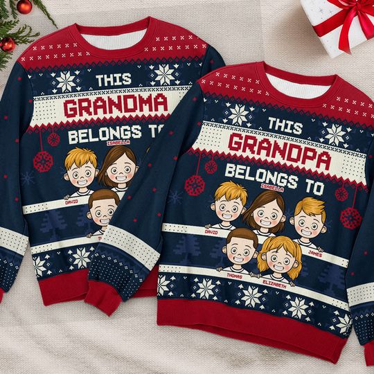 This Grandma Belongs To Green Style – Family Personalized Custom Ugly Sweatshirt