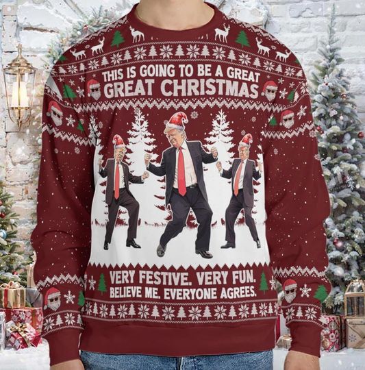 This Is Going To Be A Great Christmas Ugly Sweater, Funny Trump Dancing Ugly Sweater
