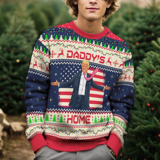 Be the first to review “Trump Daddy’s Home Ugly Sweater Christmas, Trump 2024 Ugly Sweater” Cancel reply