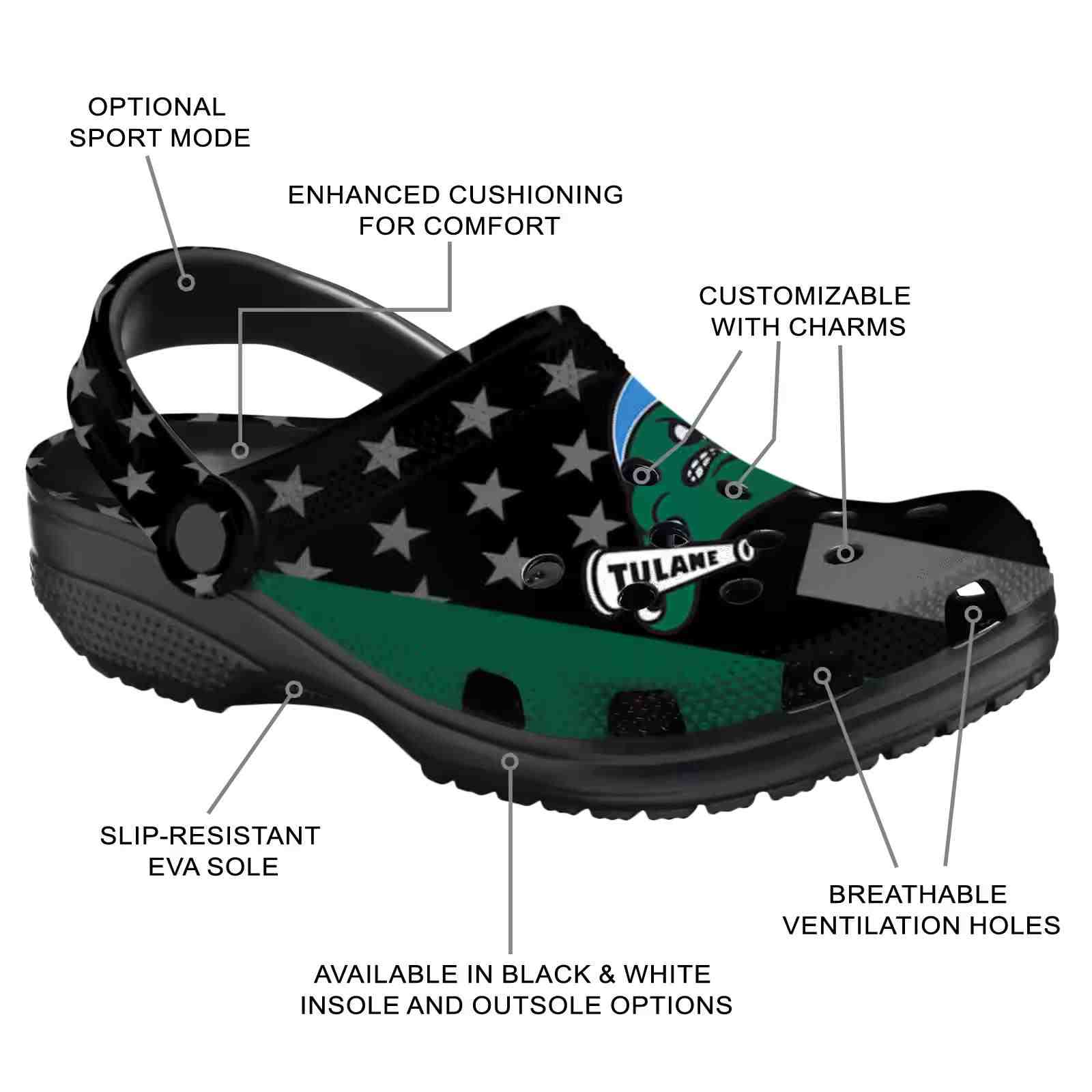As part of our Tulane Green Wave Crocs and NCAA Crocs collections, these unique Clog are designed to let your love for your favorite shine bright.
