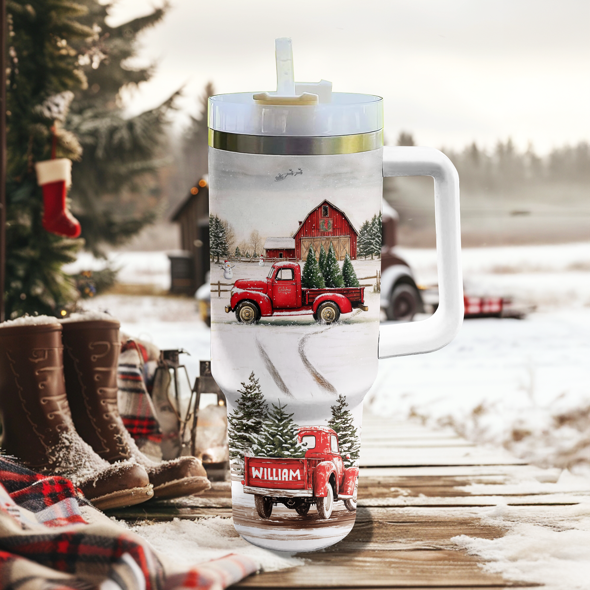 Vintage Red Truck Christmas Custom Stanley Cup 40 oz 30 oz Tumbler With HandleTVC2301502
