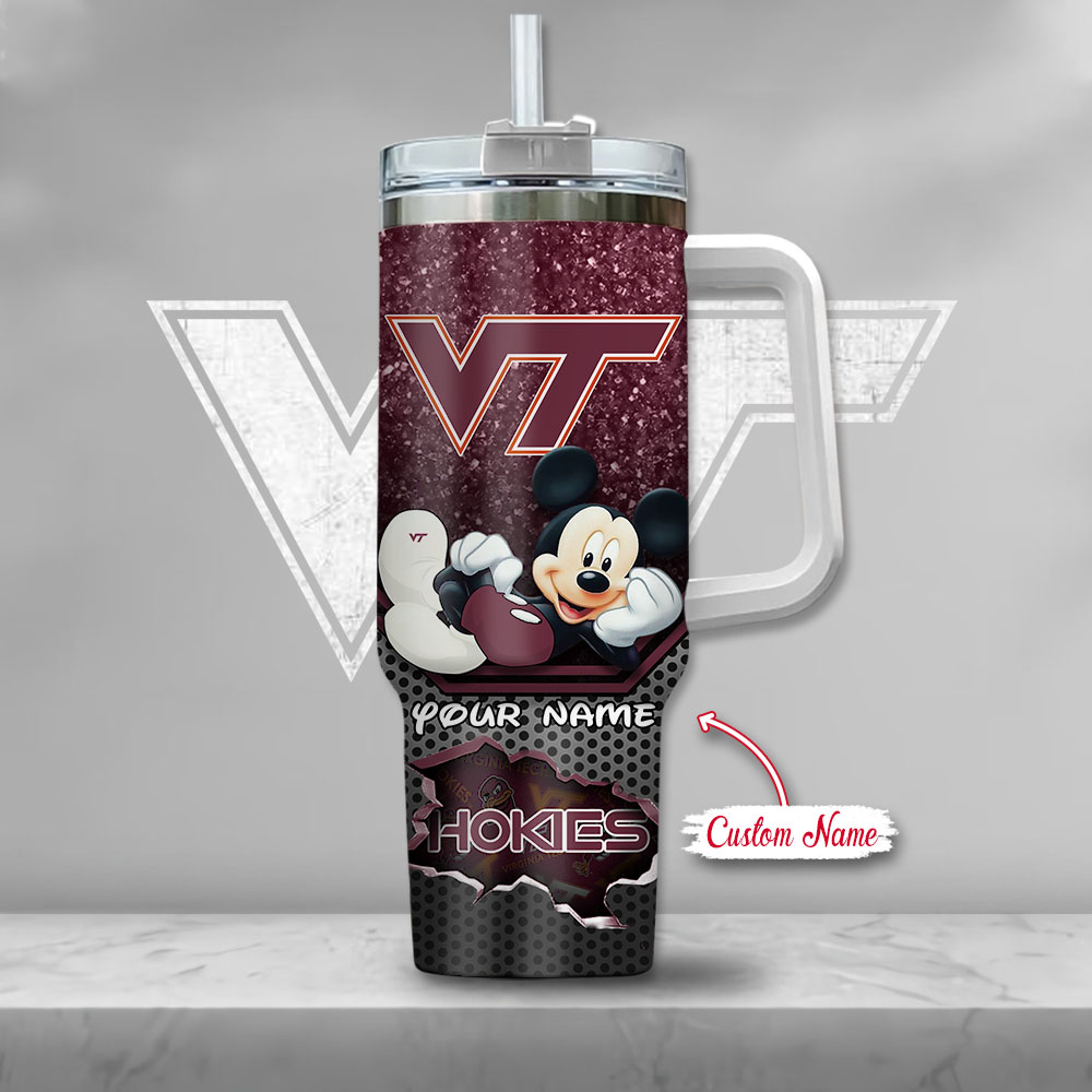Virginia Tech Hokies NCAA Mickey Mouse Custom Stanley Cup 40 oz 30 oz Tumbler With HandleTVC230123