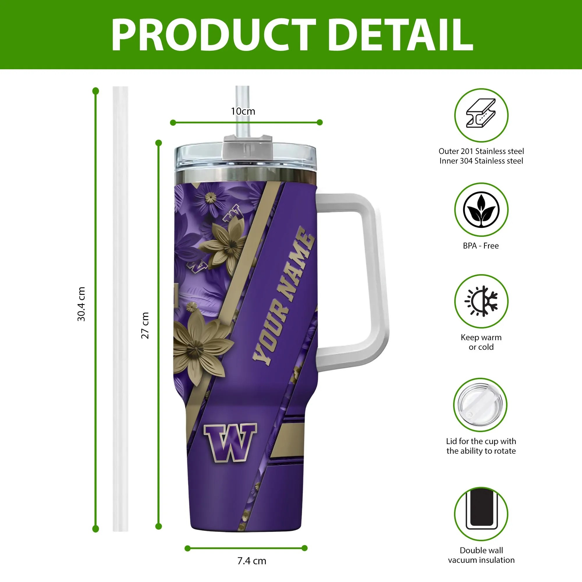 Washington Huskies NCAA Custom Stanley Cup 40 oz 30 oz Tumbler With HandleTVC230106