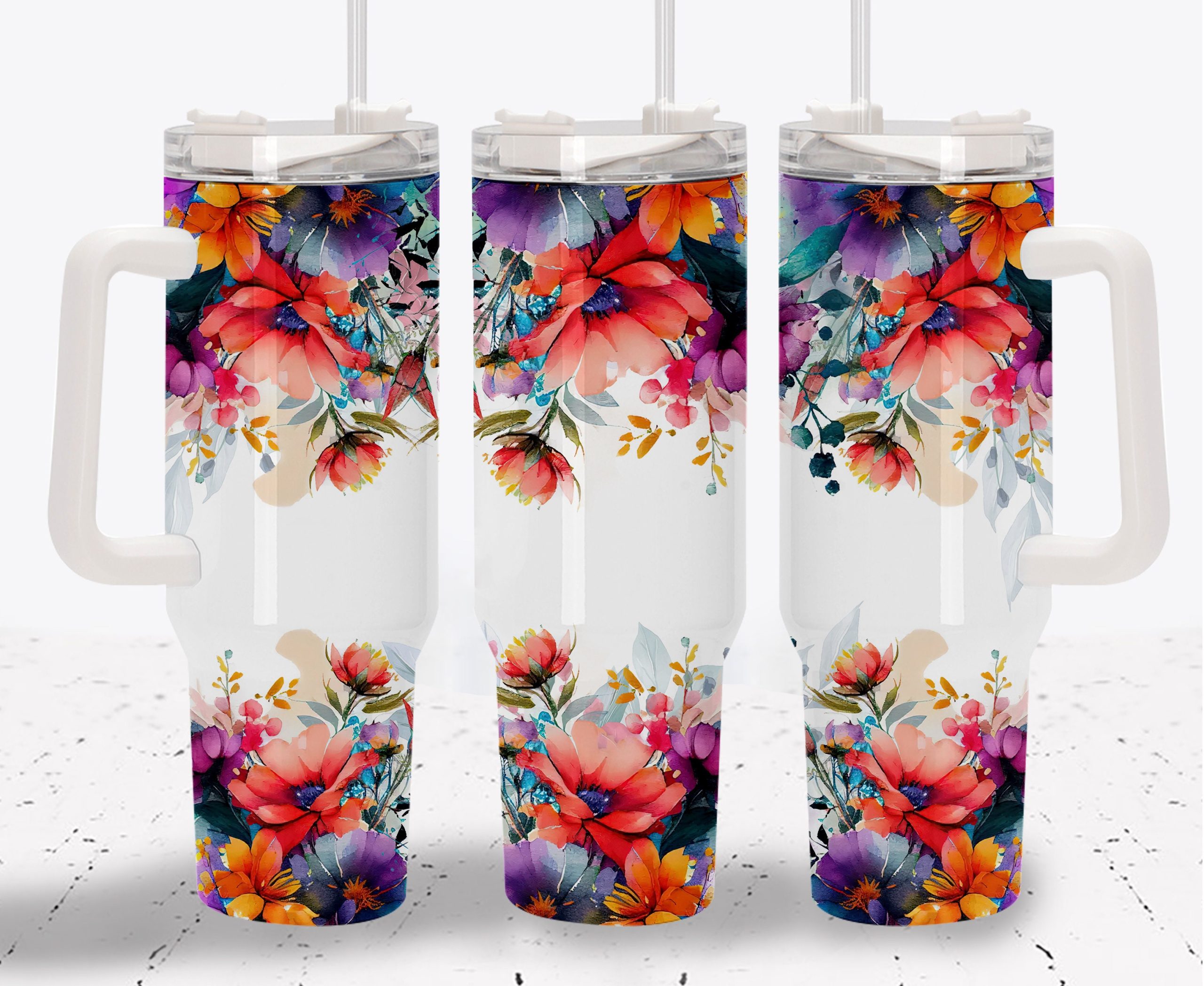Watercolor Flowers Custom Stanley Cup 40 oz 30 oz Tumbler With HandleTVC2301960