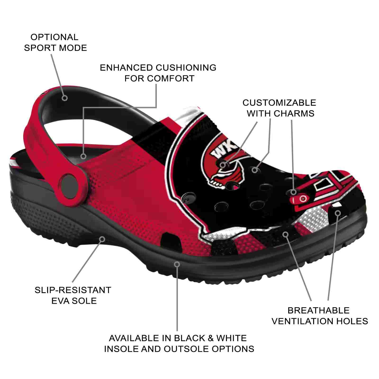 As part of our Western Kentucky Hilltoppers Crocs and NCAA Crocs collections, these unique Clog are designed to let your love for your favorite shine bright.