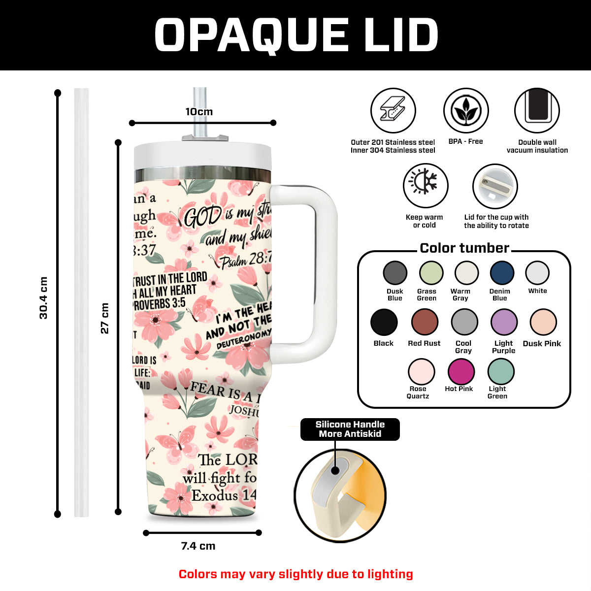 - Size: 40oz capacity with slide lid and clear straw.