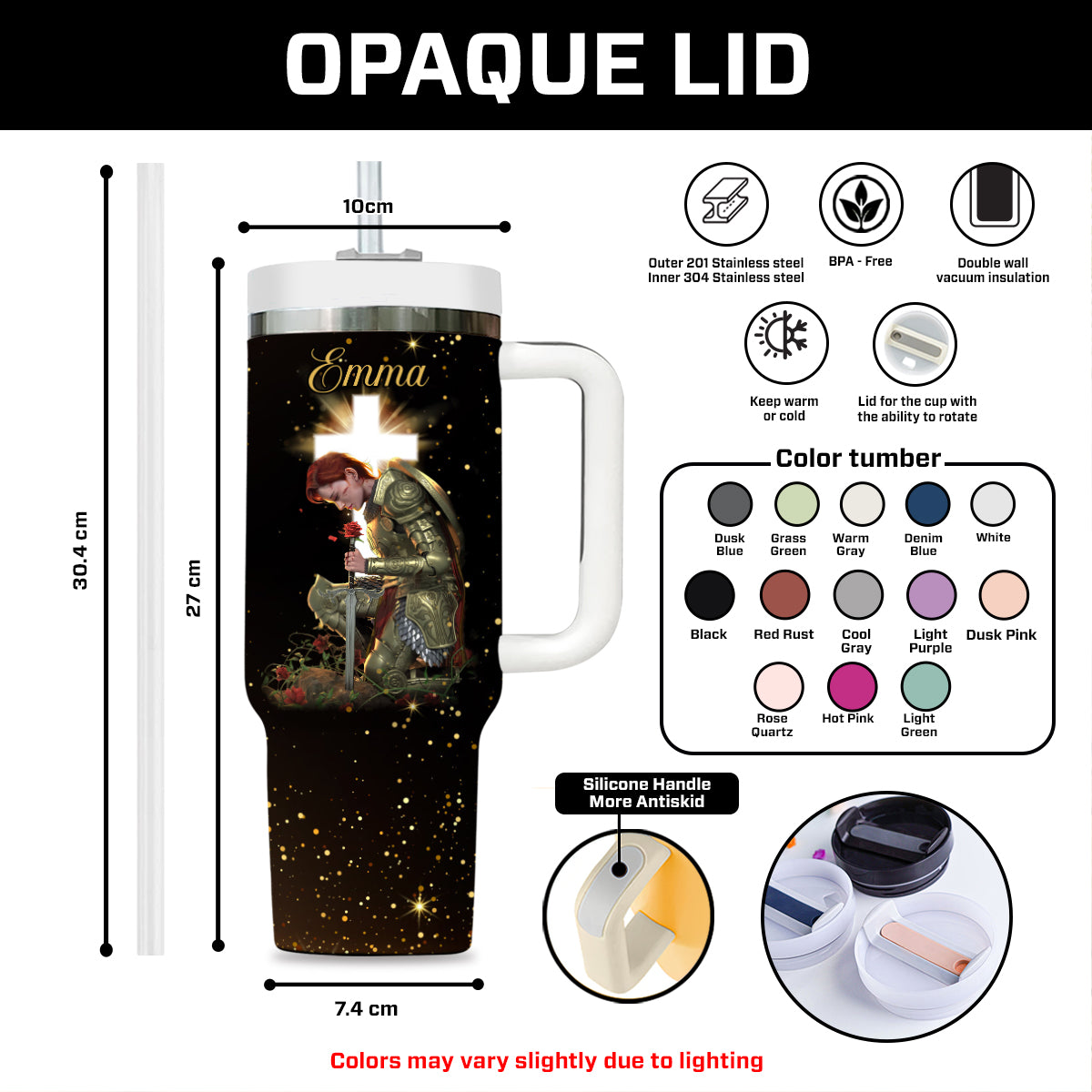 - Insulation: Double-wall vacuum keeps drinks cold for 12 hours and hot for 6 hours.